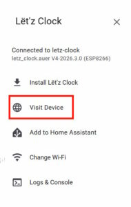 - Mam Knäppchen “Visit Device” kann ee direkt de Web Interface opruffen fir verschidden Astellungen (Hellegkeet, Nuecht Modus etc…)